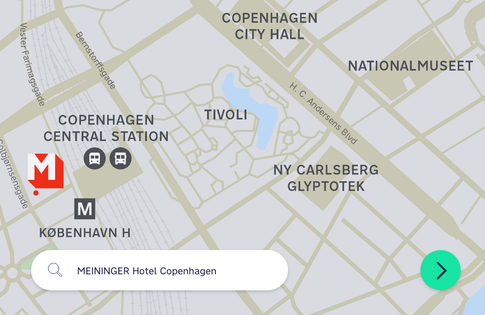 The hotel is located approximately 120 meters from Københavns Hovedbanegård, the city's main train station. It is served by many regional and long-distance trains.